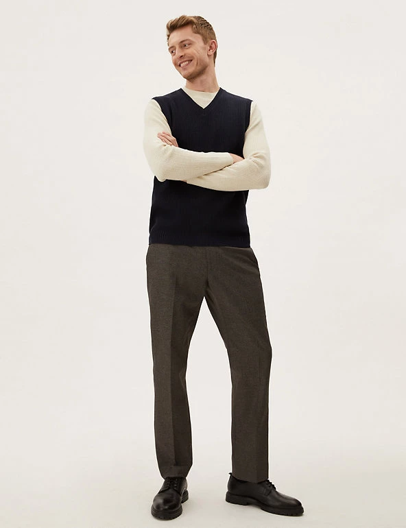 Product Style: Flat front, Tailored fit, Hook bar and zip fastening, Trouser Style: Flat front, Active waistband moves with you