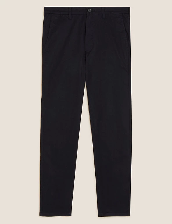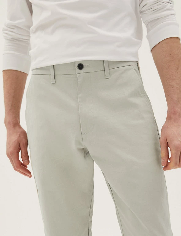 These cotton-rich chinos make smart-casual dressing effortless. They come in a modern tapered shape with added stretch for comfort. An active waistband offers freedom of movement, while our clever Buttonsafeâ„¢ technology keeps the button on the fly from fa