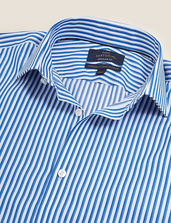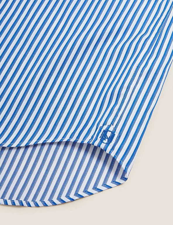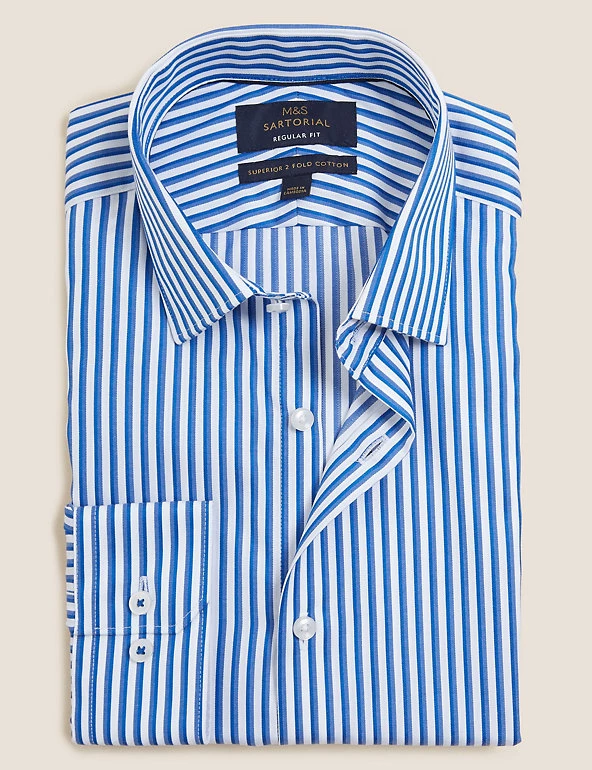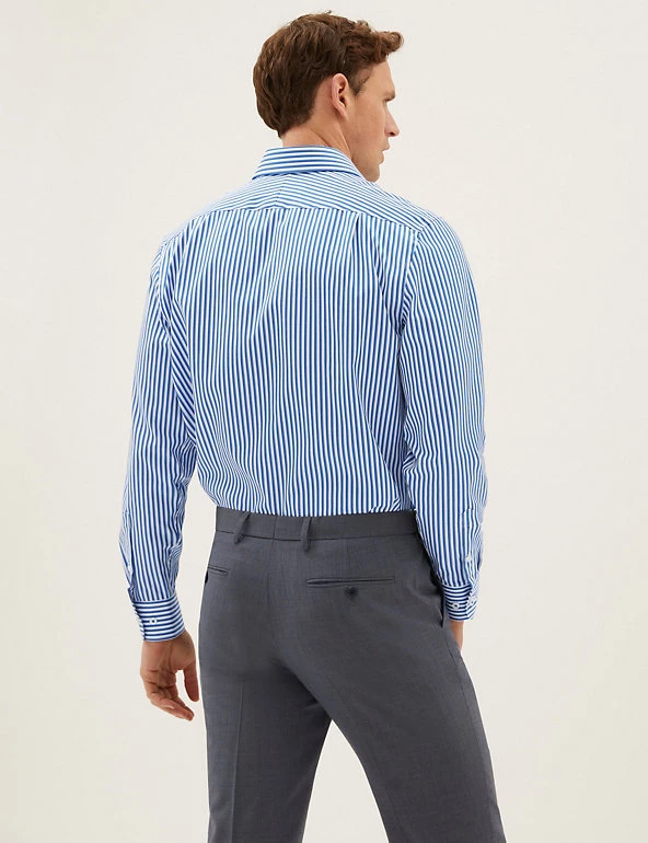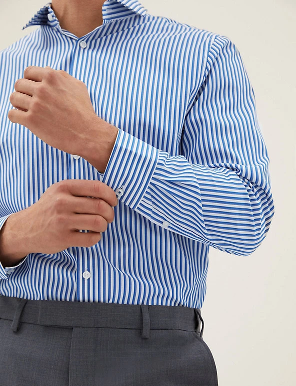 Update your workwear essentials with this classic pure cotton shirt. Regular fit, with a button-through fastening and long single cuff sleeves. Features pinstripes and a subtle sheen, thanks to the sateen fabric. Our easy-to-iron technology means this shirt just needs a quick press. All of the cotton for our clothing is sustainably sourced and always will be. M&S Collection: easy-to-wear wardrobe staples that combine classic and contemporary styles. As part of our environmental commitments, we’re working to reduce our use of plastic wherever possible. That’s why we’ve removed our plastic bags on this product.