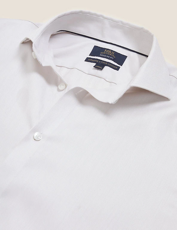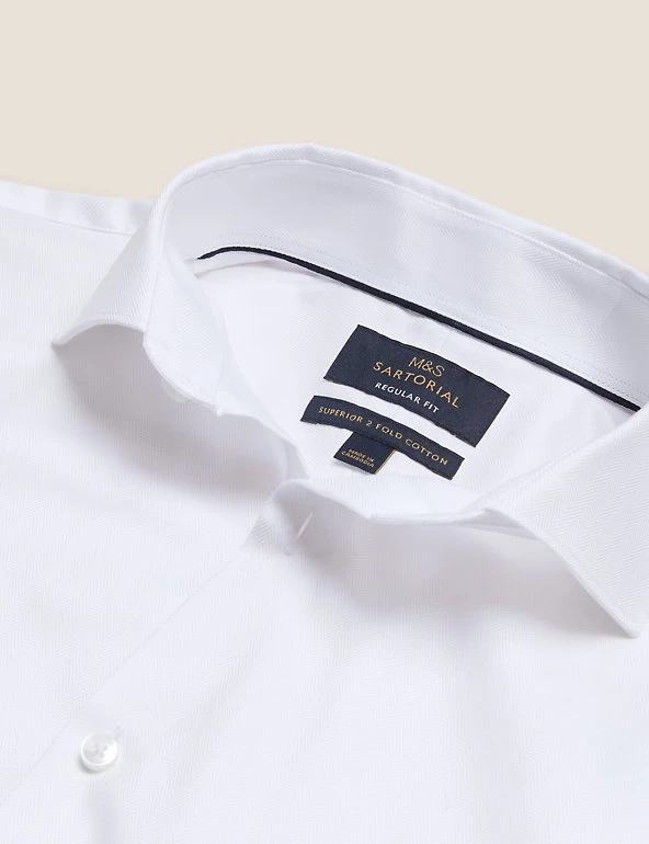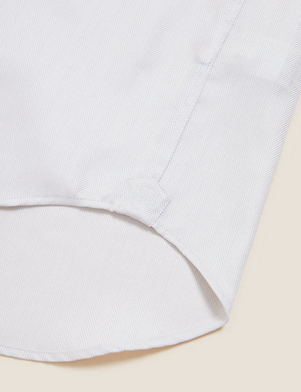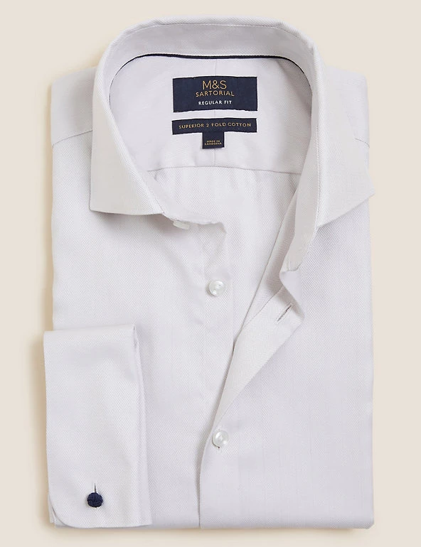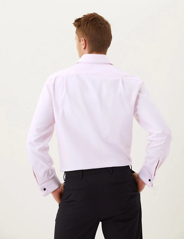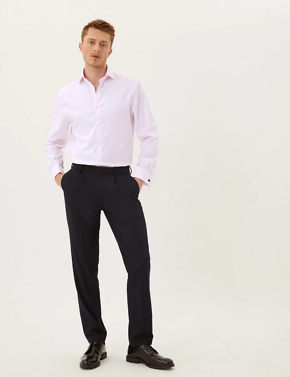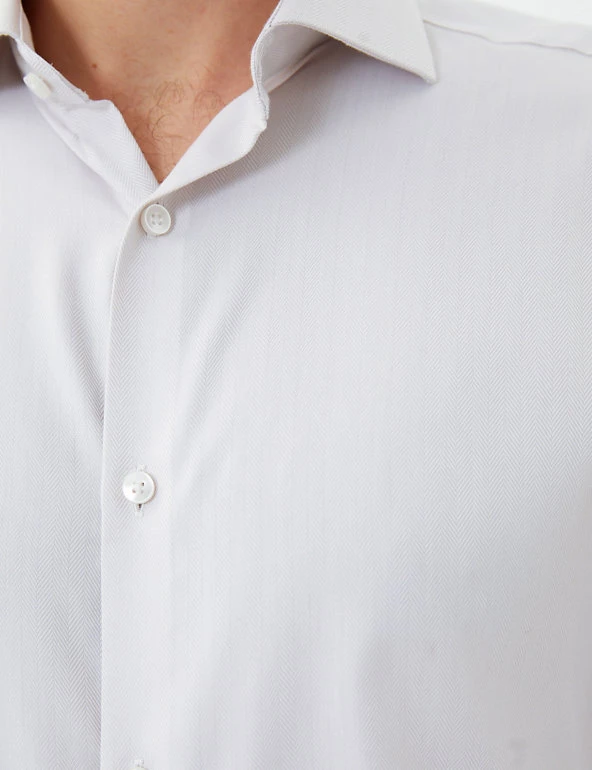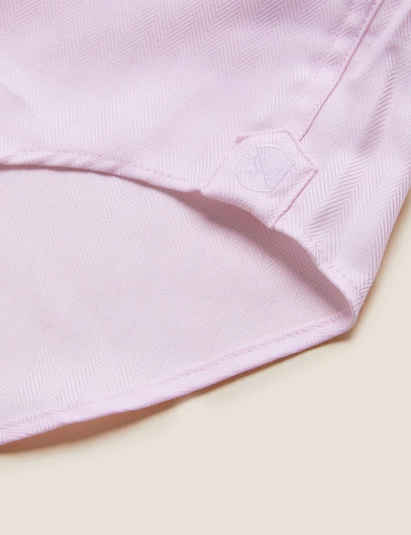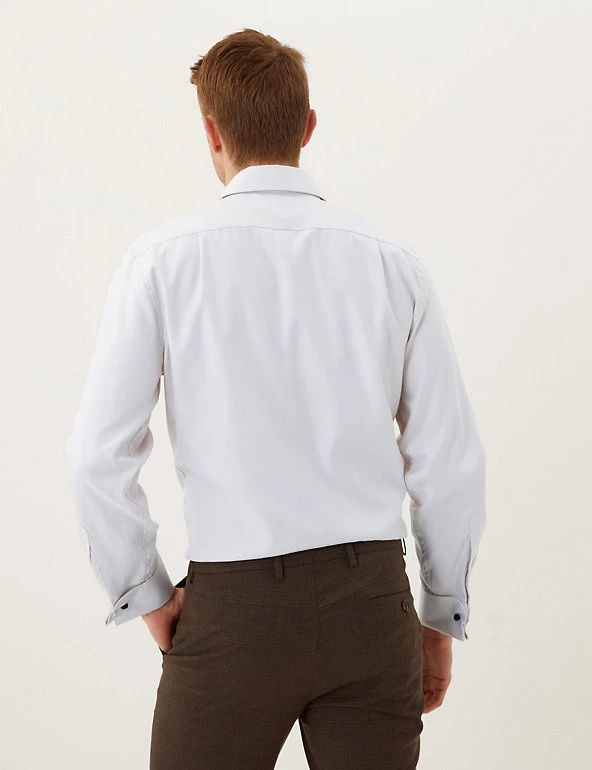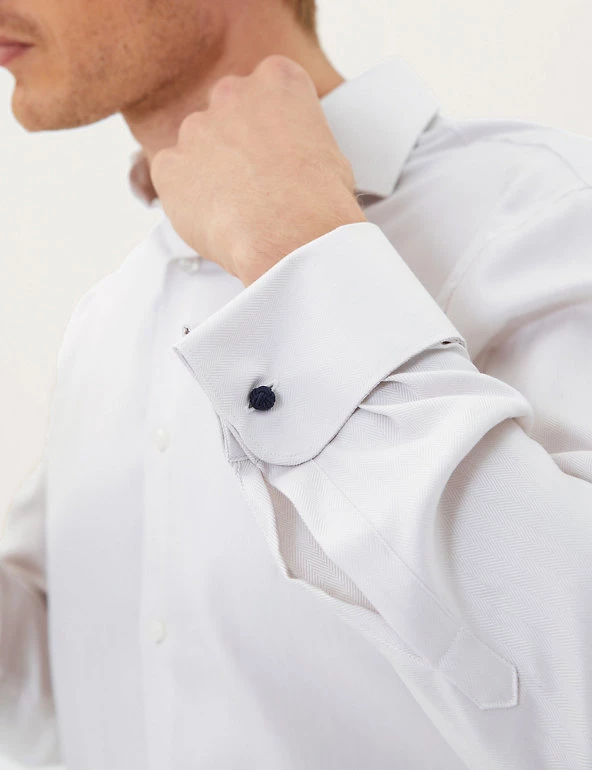 Refresh your everyday ensembles with this pure cotton shirt. It’s designed in a regular fit, with long sleeves and double cuffs. Textured for a luxurious touch. An easy-iron finish means it only needs a quick press. All of the cotton for our clothing is sustainably sourced and always will be. As part of our environmental commitments, we’re working to reduce our use of plastic wherever possible. That’s why we’ve removed our plastic bags on this product. We only ever use responsibly sourced cotton.