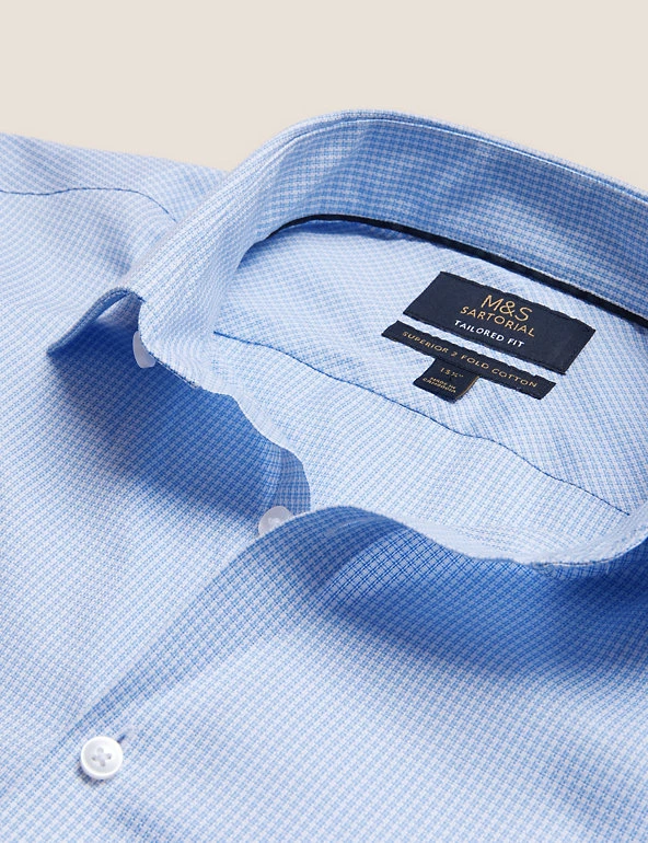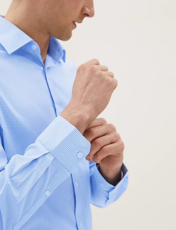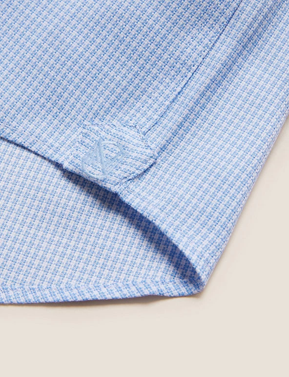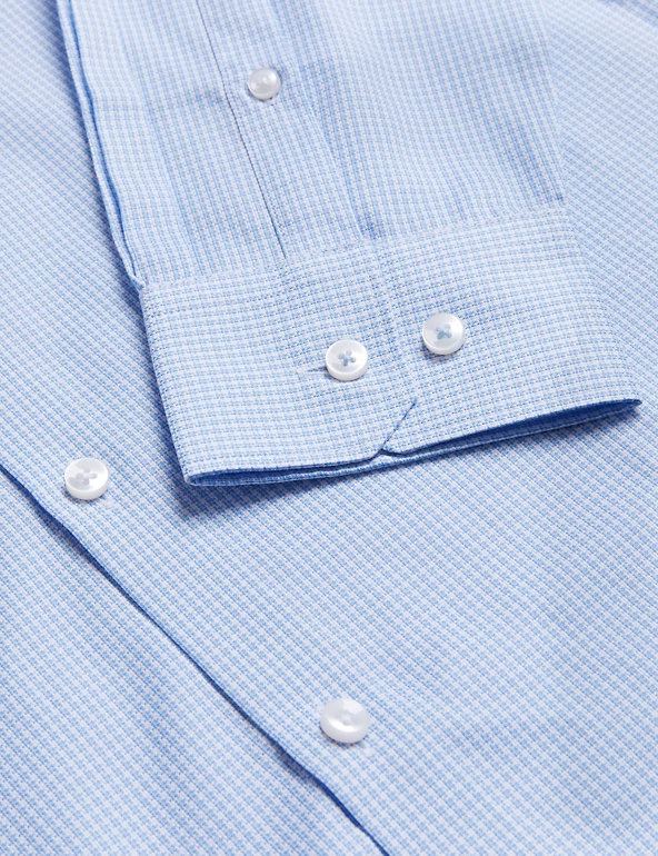 This pure cotton shirt has a puppytooth pattern and a subtle woven texture for a luxe look. Timeless tailored fit, with a classic collar and single cuffs. Our easy to iron finish makes caring for your new shirt a breeze. As part of our environmental commitments, we’re working to reduce our use of plastic wherever possible. That’s why we’ve removed our plastic bags on this product.