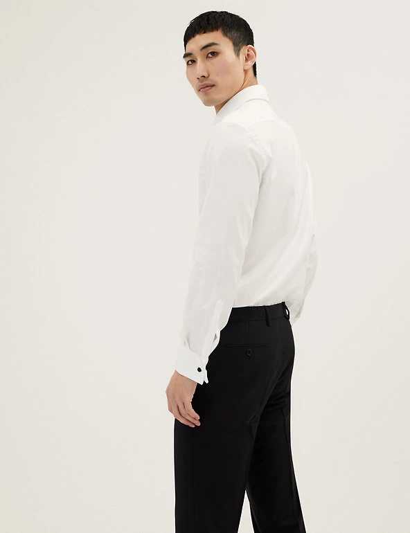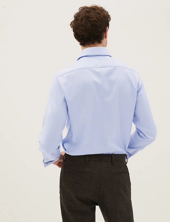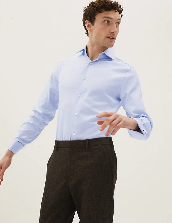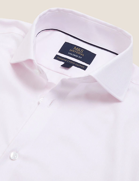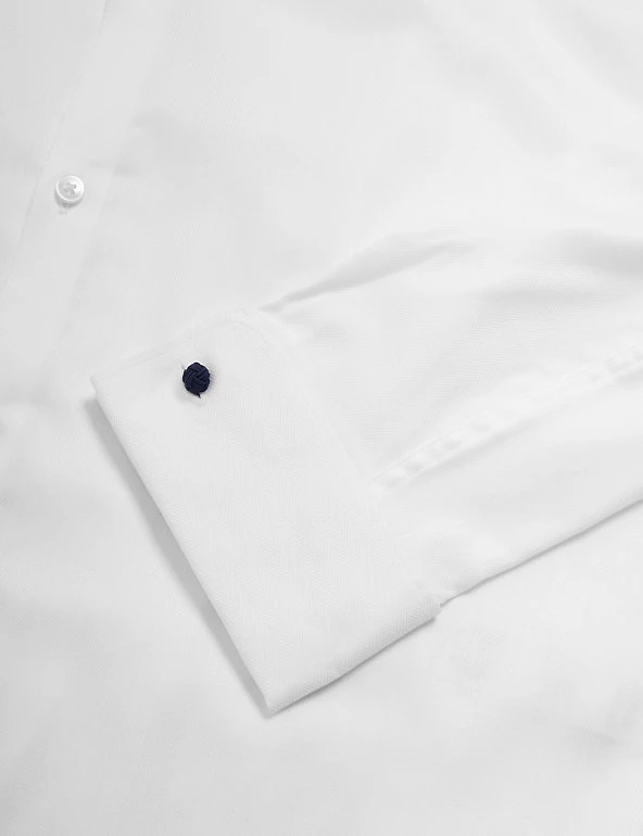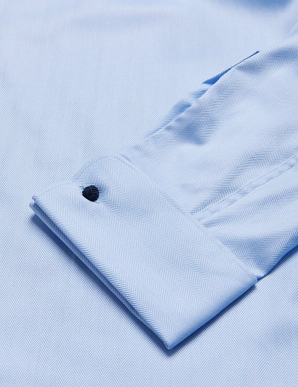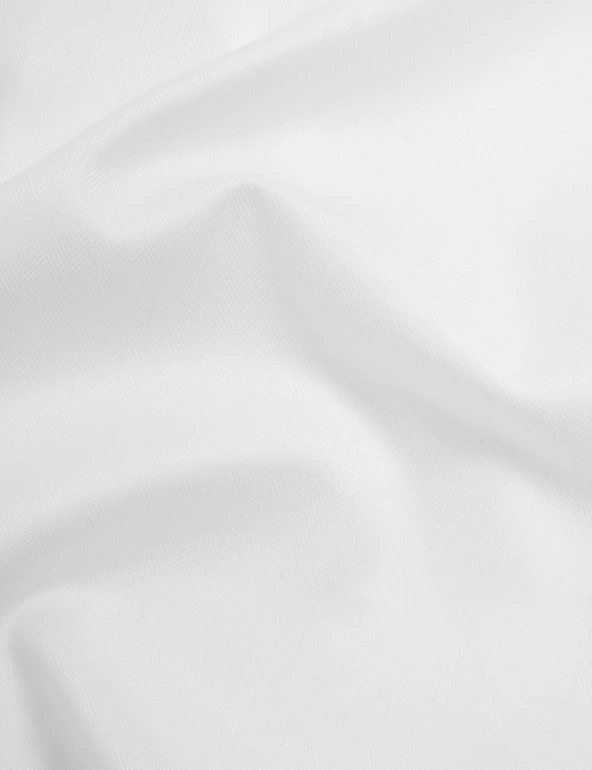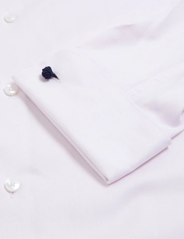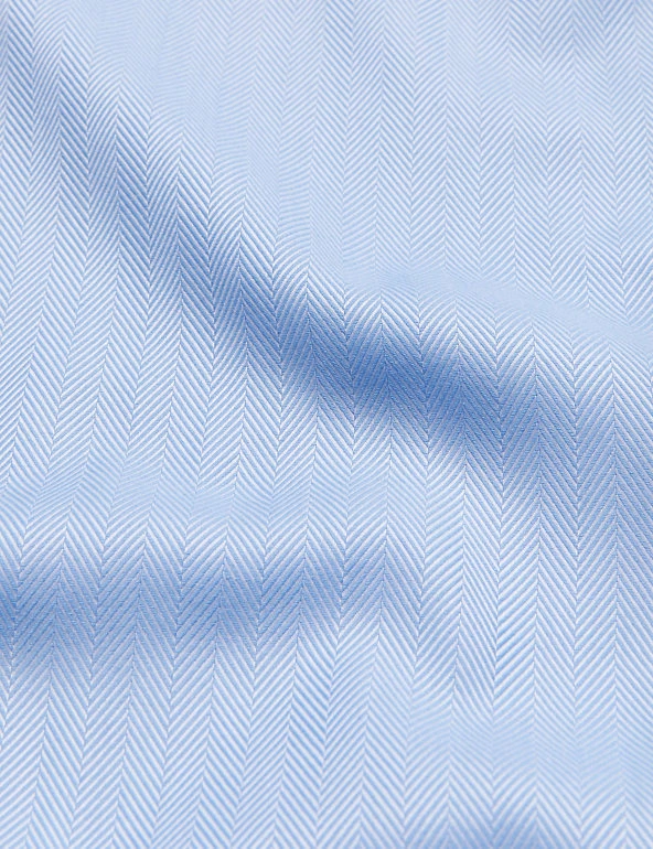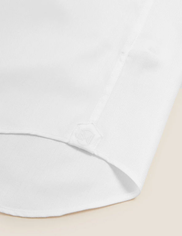 A subtle herringbone weave effect gives this pure cotton shirt luxury appeal. Cut to a sharp tailored fit for a streamlined look. This smart piece features a cut-away collar and double cuffs, together with a twill-textured finish. Delicate gusset embroidery and a contrast button complete the look. Easy-to-iron fabric makes for simple and quick care. All of the cotton for our clothing is sustainably sourced and always will be. As part of our environmental commitments, we’re working to reduce our use of plastic wherever possible. That’s why we’ve removed our plastic bags on this product. As part of our environmental commitments, we’re working to reduce our use of plastic wherever possible. That’s why we’ve removed our plastic bags on this product.