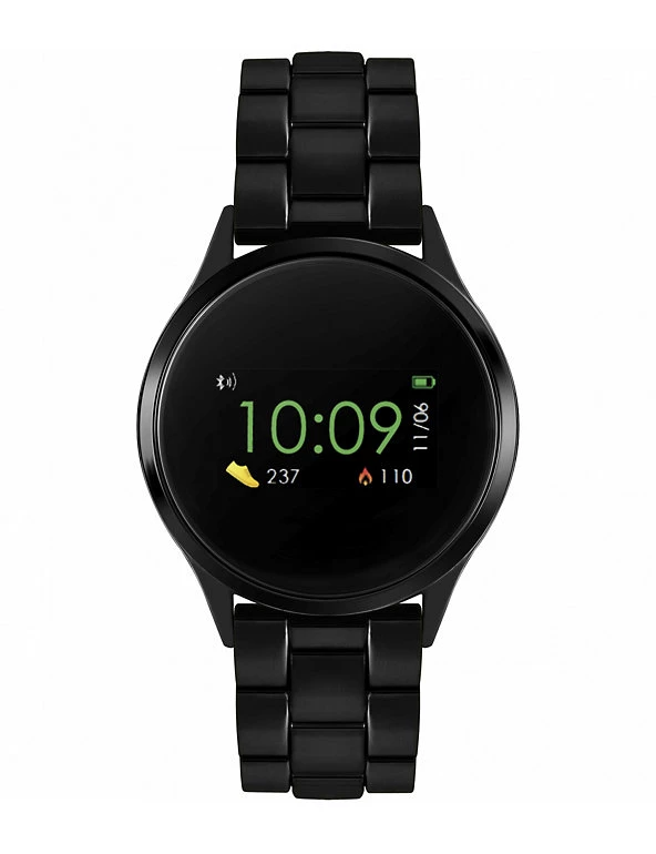 Track your fitness with this intelligent smartwatch from Reflex Active. The sleek stainless steel design features a contemporary matching dial with a luminous display. Receive message and call notifications alongside live weather reports, and track everything from your sleep to your steps with this stylish timepiece. There’s also a useful find your phone function, plus remote camera control for photos.