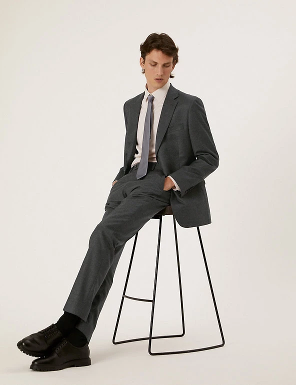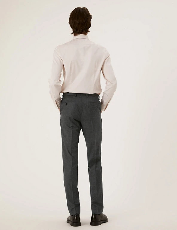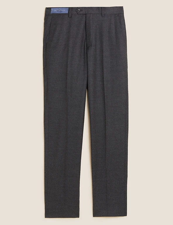 Bring a touch of Italian style to your formal wardrobe with these pure wool flannel trousers. They’re cut to a tailored fit, with a flat-front design that sits lower on the hips for a sleek modern look. The super 120’s Guabello fabric is woven in Italy and has natural stretch. These trousers are part-lined for additional comfort, and a mitred tab waistband extension allows you to adjust the fit. Our Buttonsafeâ„¢ technology uses special heat-fused buttons that won’t fall off. M&S Collection: easy-to-wear wardrobe staples that combine classic and contemporary styles.