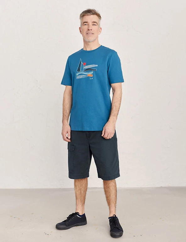This breezy organic cotton t-shirt from Seasalt Cornwall is perfect for nautical adventures. It’s designed in a classic regular fit with a neat crew neck. The motif on the front features an artistic-inspired abstract graphic of a boat finished with bright colour pops. Made with organic cotton.