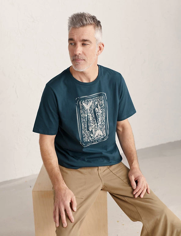 Meet your new off-duty staple, this pure cotton t-shirt from Seasalt Cornwall. Designed in a comfy regular fit, it features an artistic print on the front inspired by the sea. A traditional crew neckline and short sleeves complete the look. Made with organic cotton.