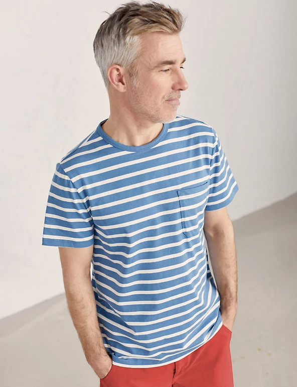 Feel stylish and comfy on relaxed days with this breezy, pure organic cotton tee from Seasalt Cornwall. It’s designed in a comfy regular fit with a classic crew neck. The striped pattern adds a nautical vibe. Made with organic cotton.