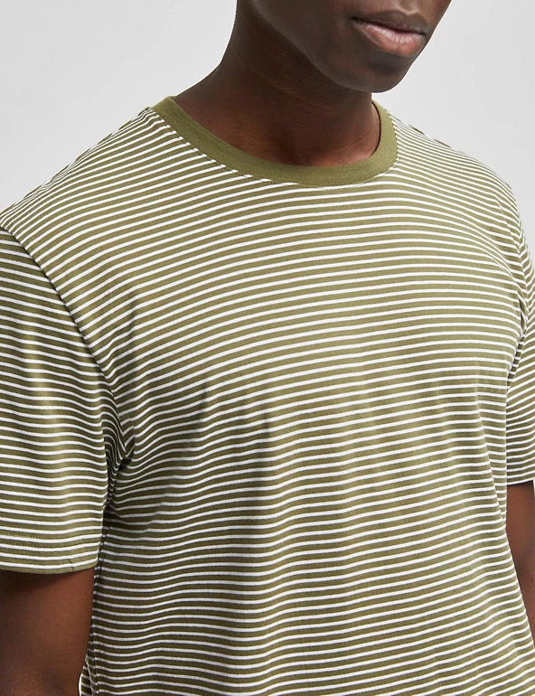 Opt for a classic vibe on off-duty days with this organic pure cotton striped tee from SELECTED HOMME. It’s designed in a comfy regular fit with a classic crew neck. Made with organic cotton.