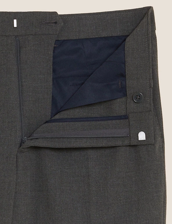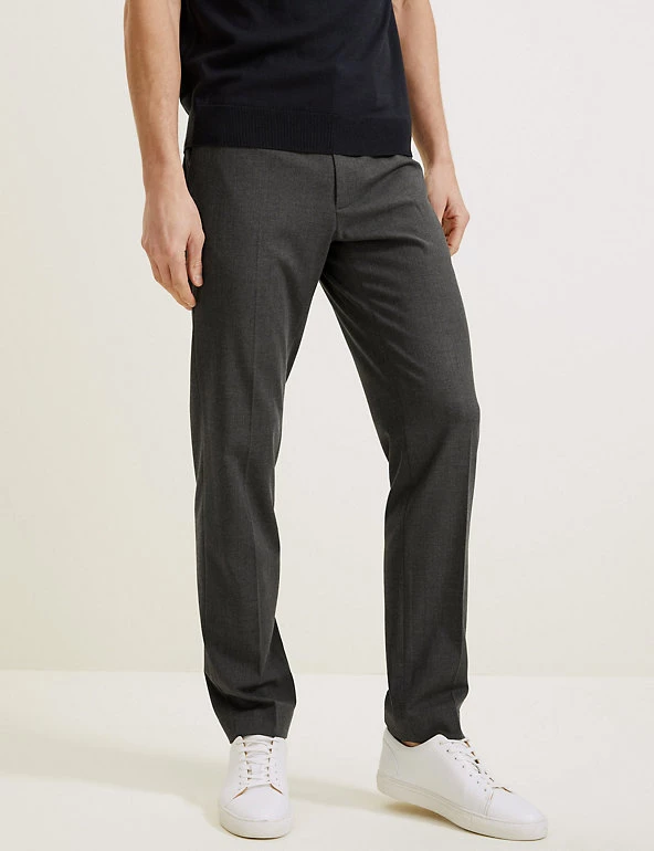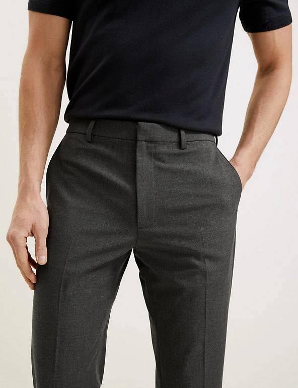 Product Style: Single pleat, Tailored fit, Hook bar and zip fastening, Unlined, Fabric Source: European, Trouser Style: Flat front, Flexifit™ 360 degree stretch fabric made with Lycra® for enhanced support and movement