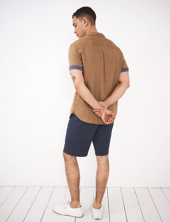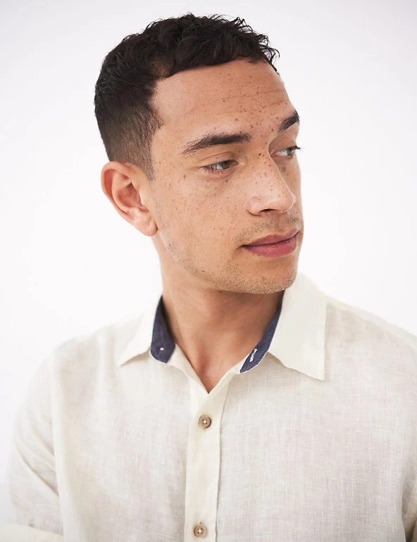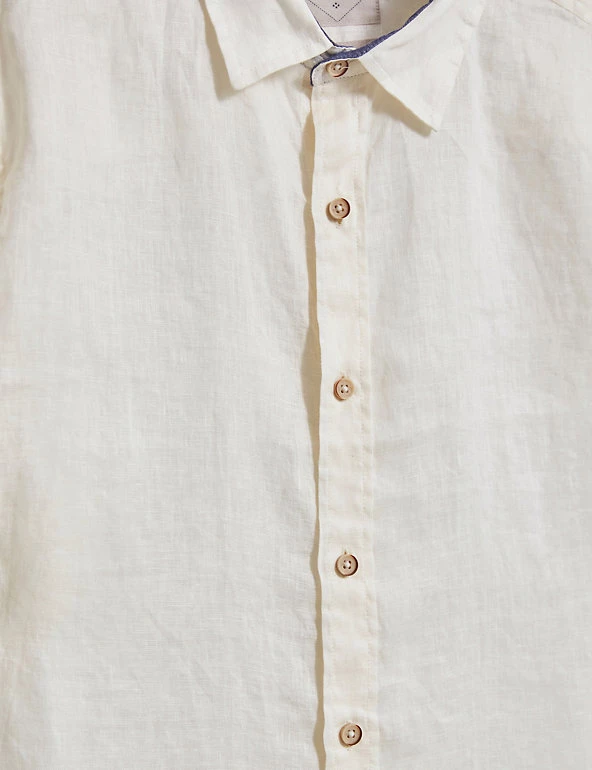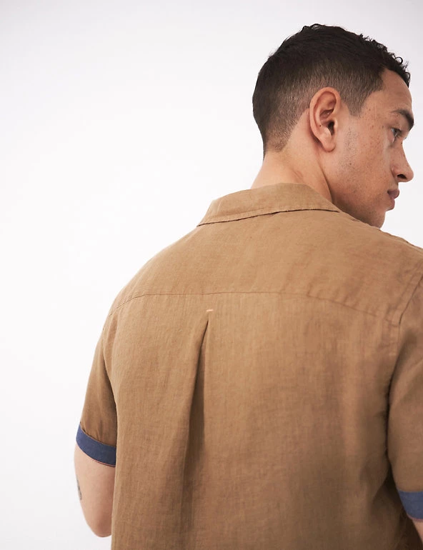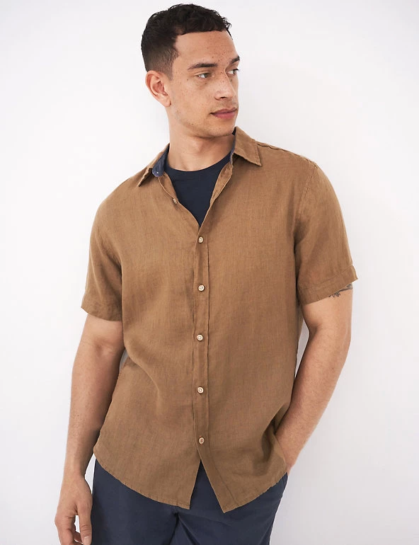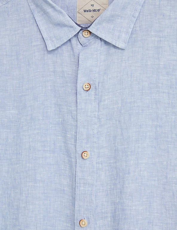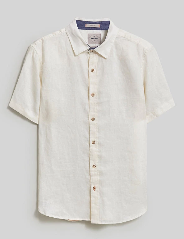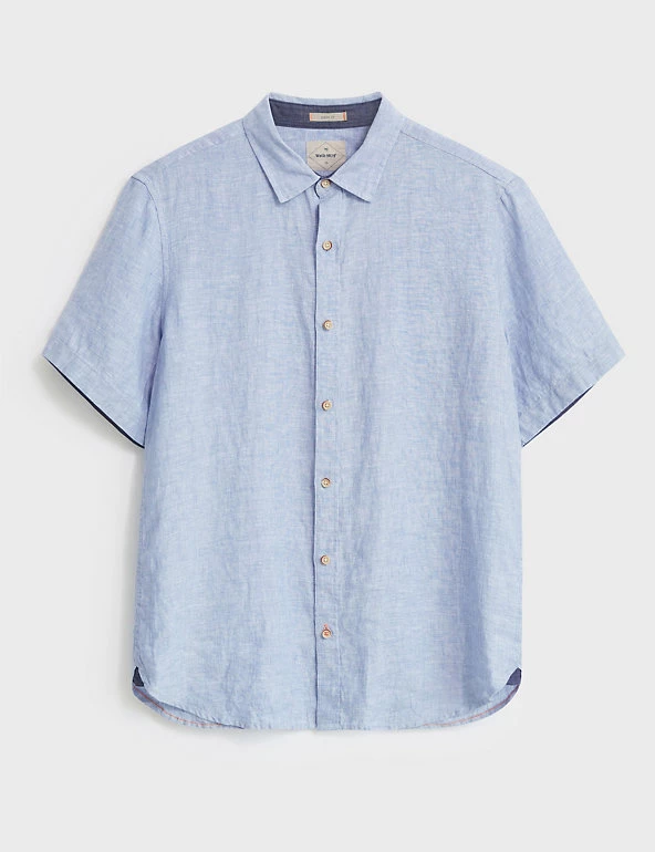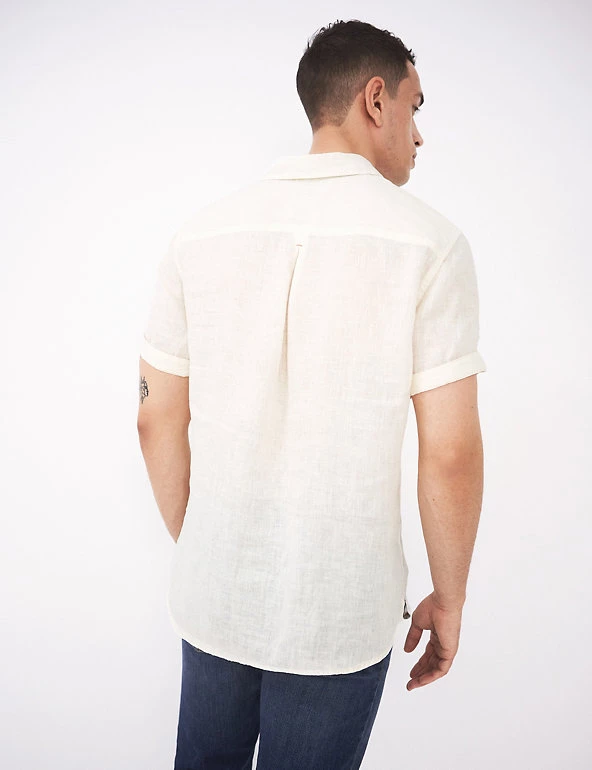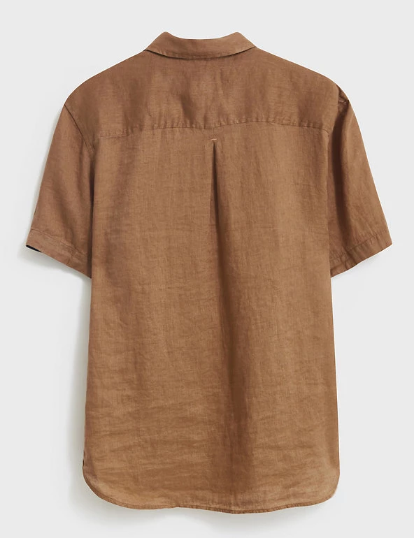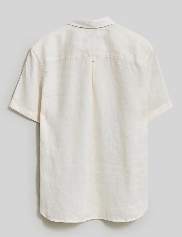 Beat the heat with this pure linen shirt from White Stuff. It features short sleeves for a breezy feel and a neat button fastening running down from the collared neck for a clean, minimal finish.