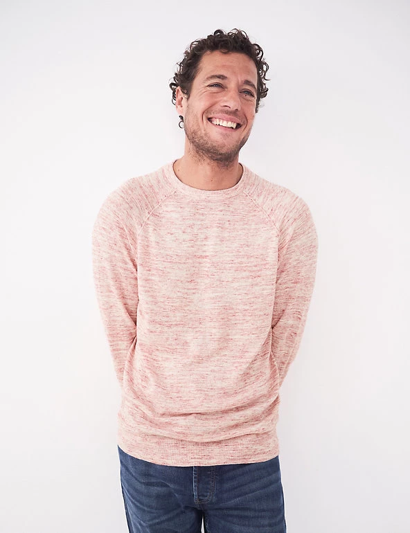 This cotton-rich jumper from White Stuff is a perfect option for off-duty days. It’s designed in a regular fit, with a classic crew neck and ribbed trims for a snug feel. The fabric is made with a linen-blend fabric for cool comfort and features a textured space dye finish.