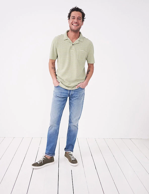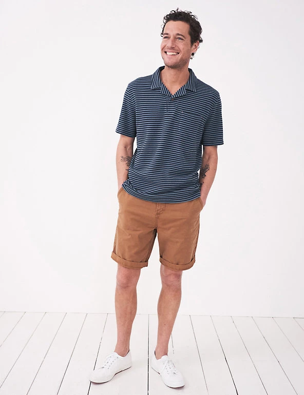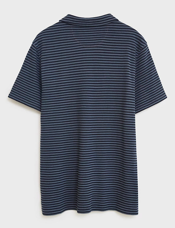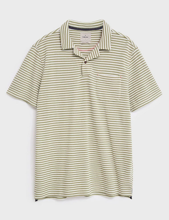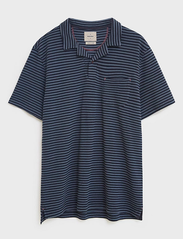 Show up to casual events looking stylish in this pure cotton revere polo by White Stuff. Decorated with contemporary stripes, this regular-fit piece features a classic polo neck, short sleeves and a patch pocket on the chest. A subtle woven texture gives it an elevated finish.