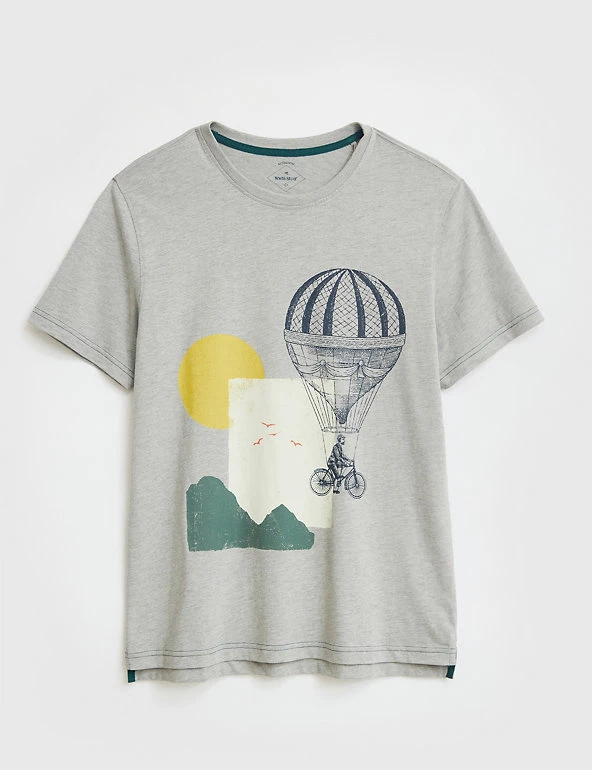 Achieve an effortlessly laid-back look with this cotton-rich t-shirt from White Stuff. It’s cut in a casual regular fit and spots a classic crew neck. The cycling hot air balloonist graphic adds a bold and distinctive feel.